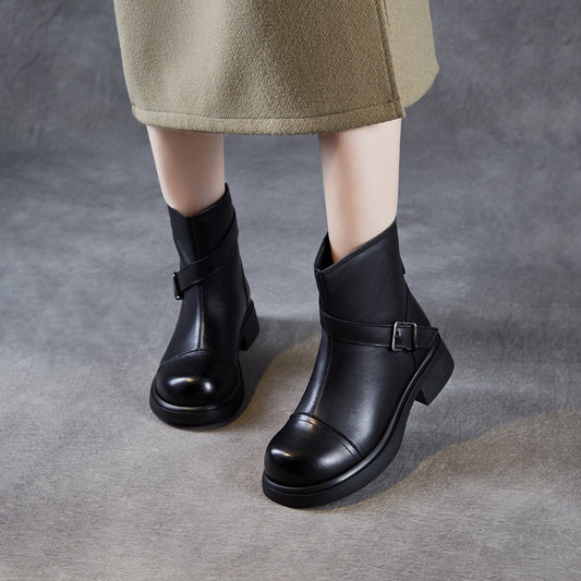 Women's Vintage Leather Buckle Strap Ankle Boots