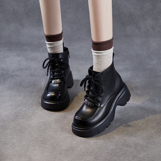 Women's Vintage Leather Casual Platform Ankle Boots